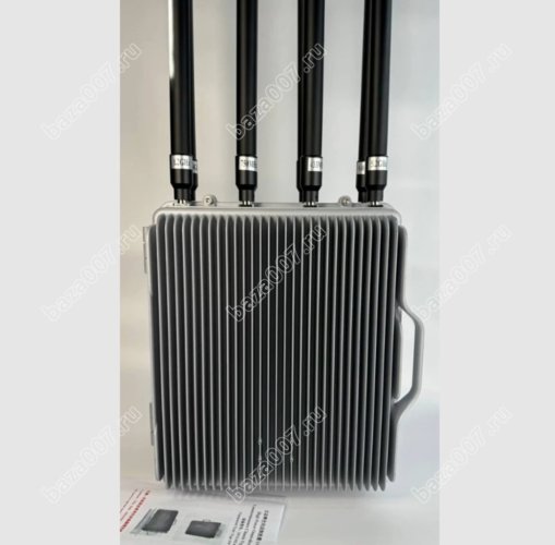 Корпус устройства выполнен с защитой по стандарту IP65, что позволяет использовать блокиратор в любых уличных условиях, обеспечивая надежную работу даже при сильном воздействии окружающей среды. Эффективная система охлаждения, включающая четыре мощных вентилятора и металлический корпус радиаторного типа, гарантирует возможность круглосуточного использования устройства, обеспечивая постоянную защиту без риска перегрева.