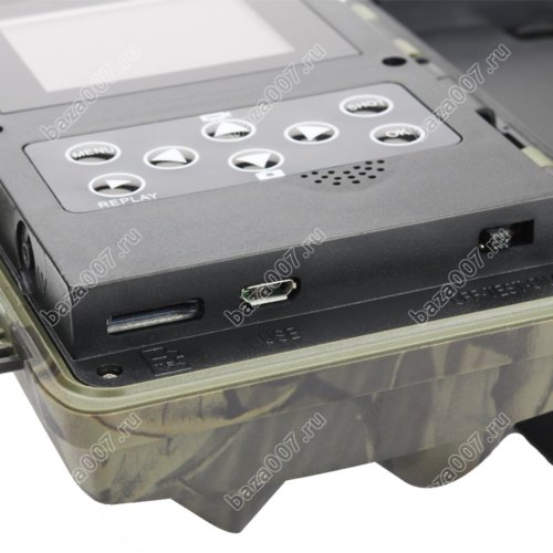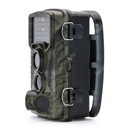 Корпус устройства имеет уровень защиты от внешних воздействий уровня IP65, поэтому она длительное время может находиться под дождём, что очень важно при установке в лесу. Важно, что на задней крышке камеры Suntek HC-800 LTE предусмотрены специальные прорези для крепления ремнём, а сама она имеет слегка вогнутую форму для надёжной фиксации на стволе дерева. Такое решение исключает её смещение при длительной работе без обслуживания. Камуфлированная окраска корпуса делает его незаметным.
